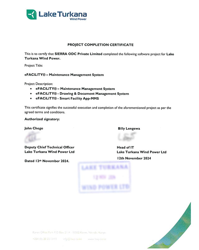On October 14th, I embarked on my first international business trip, leaving the familiar grounds of Coimbatore, where SIERRA ODC is headquartered, for Nairobi, Kenya. I boarded an Indigo flight, excited but nervous about the journey ahead. This wasn’t just any assignment—it was my first international project, and I was about to represent SIERRA ODC on a global stage, supporting the eFACiLITY® implementation for the Lake Turkana Wind Power (LTWP) project.