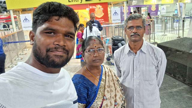 At Coimbatore airport with my parents, en route to Nairobi, Kenya