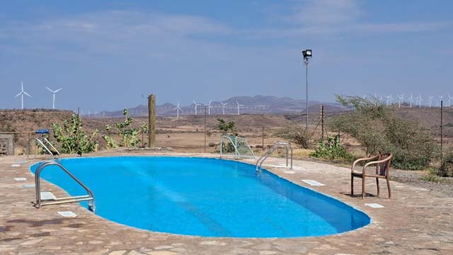 Lake Turkana Camp clubhouse featuring a spacious lounge area with a swimming pool